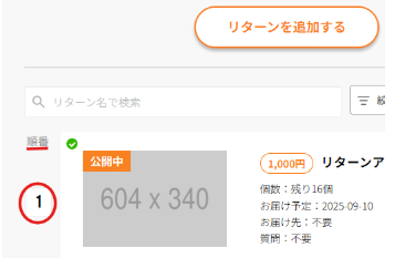 リターン編集ページの、左側にある「順番」から、変更することができます。