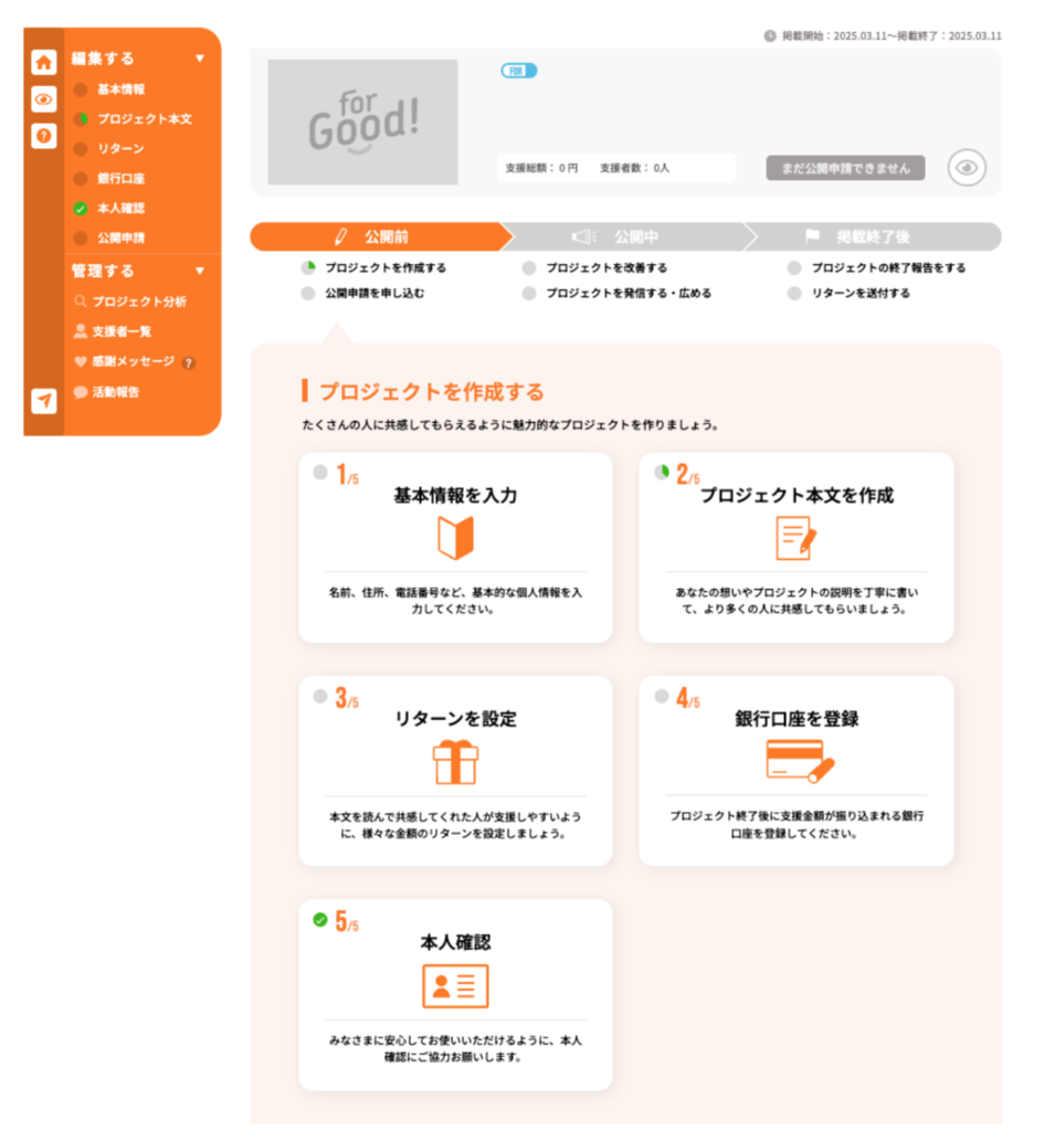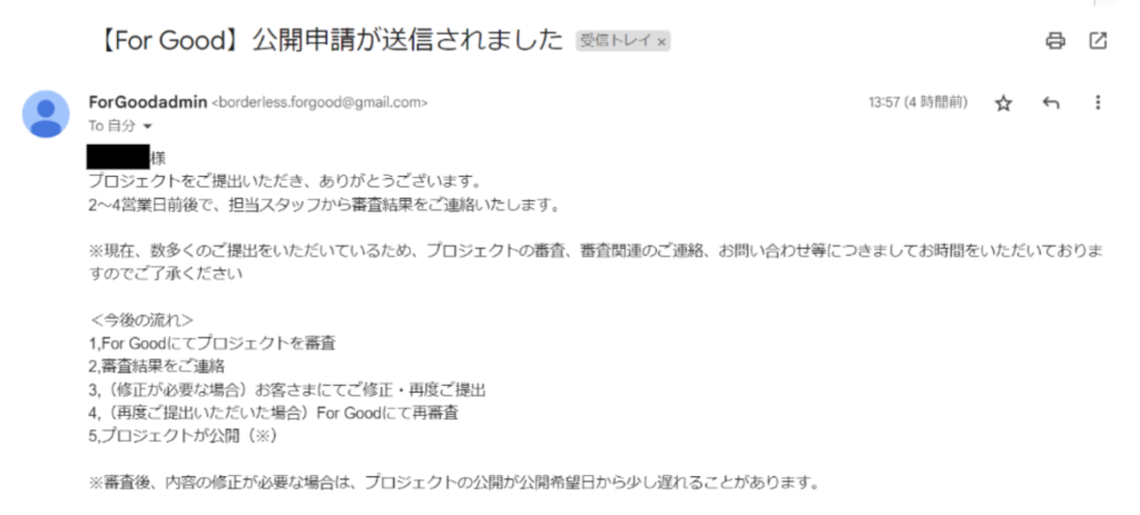 プロジェクトページを申請いただいた後、For Goodの利用規約に基づいて審査をさせていただきます。
